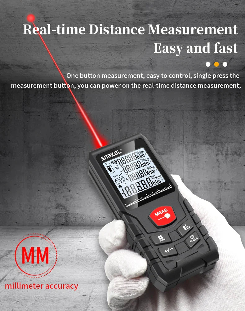 Experience effortless and precise measurements with our advanced Laser Distance Meter. Designed for professionals and DIY enthusiasts alike, this compact device allows you to measure distances up to 120 meters with unmatched accuracy. Powered by batteries and featuring a sleek design, it fits perfectly in your hand or pocket, making it the ideal tool for construction, interior design, or any measurement tasks. With CE certification and no harmful chemicals, it's not just effective but safe to use. Elevate your measuring experience today!