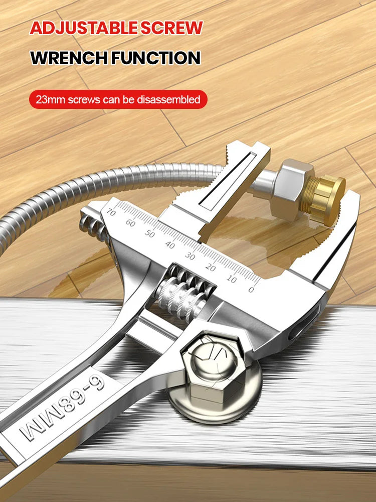 Unlock the power of versatility with our adjustable wrench, designed for ultimate functionality. Featuring a wide-angle large opening, this tool is perfect for various working scenarios, from tight corners to demanding tasks. Its compact design allows for easy maneuvering in confined areas, making it an essential addition to your toolkit. Whether you're tackling 23mm screws or need a reliable wrench, this multifunctional tool is ready for any challenge. Made from durable aluminum alloy, it combines strength with lightweight convenience. Elevate your DIY projects and repairs with this indispensable wrench today!